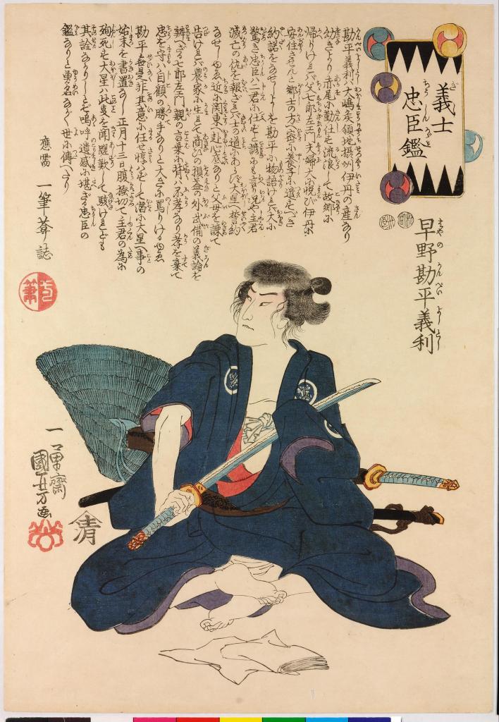 Kuranosuke exemplifies a stock Kabuki character referred to as jitsugotoshi. Kabuki21, the indispensable online guide to Kabuki, defines jitsugotoshi as “a wise, righteous and clever man, who appears on stage at the right time to set the record straight, to solve an enigma or foil an evil plot.”